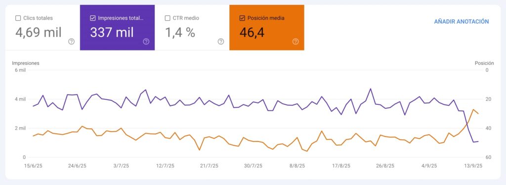 Si en herramientas como Google Analytics ves una curva descendente, es señal de alerta. Las causas pueden ir desde cambios en el algoritmo hasta competidores que publican contenido más actualizado. Revisa títulos, velocidad de carga, enlaces internos y estrategia de palabras clave. Actualizar artículos, corregir errores técnicos y fortalecer el SEO local o internacional puede revertir la caída y recuperar la visibilidad.
