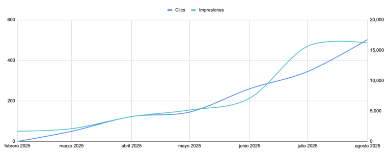 Con estas acciones hemos obtenido una gran mejora en visitas (obtuvimos +10.000 visitas en el mes de agosto 2025, de las cuales 500 fueron orgánicas), posicionamiento orgánico y obtener +30 formularios de consulta al mes.
