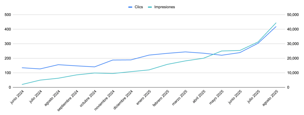 En junio de 2024 planificamos una estrategia de posicionamiento orgánico para un sitio web que ofrece soluciones digitales para inmobiliarias. Al iniciar, el tráfico orgánico era de menos de 100 visitas mensuales y no obtenían consultas de usuarios sobre sus servicios.